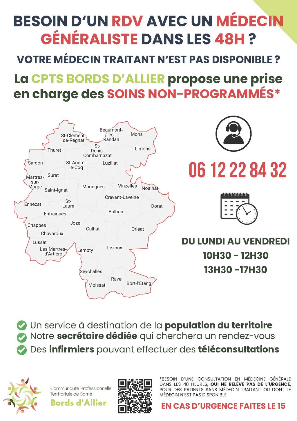 DISPOSITIF DE SOINS NON PROGRAMMÉS (SNP) SUR LE TERRITOIRE DE LA CPTS BORDS D’ALLIER
