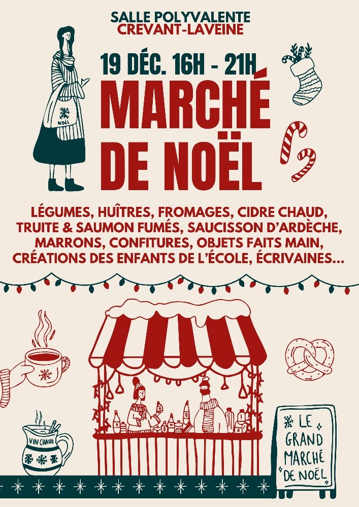 vendredi 19 décembre : marché de noël à Crevant-Laveine (16h-21h).