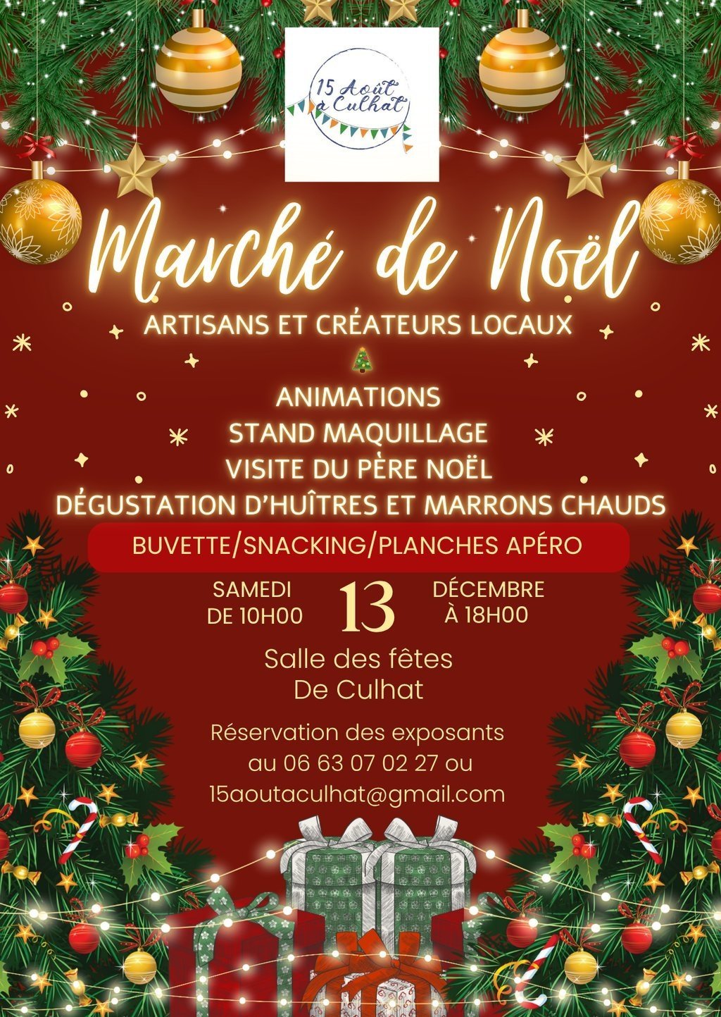 samedi 13 décembre : marché de noël à Culhat (10h-18h) et à Moissat (15h-20h)