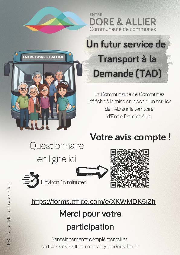 Pour améliorer vos déplacements sur le territoire, la Communauté de communes Entre Dore et Allier réfléchit à la mise en place d'un service de Transport à la Demande (TAD).