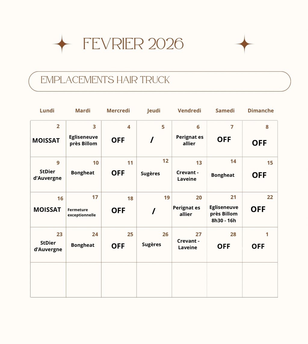 Voici le planning pour le mois de Février, les horaires seront légèrement modifiés lors des vacances scolaires.